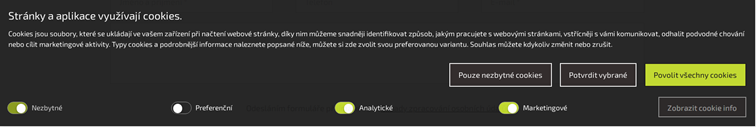 Základní cookie lišta umožňuje okamžité zakliknutí daných druhů cookies a vypadá následovně: